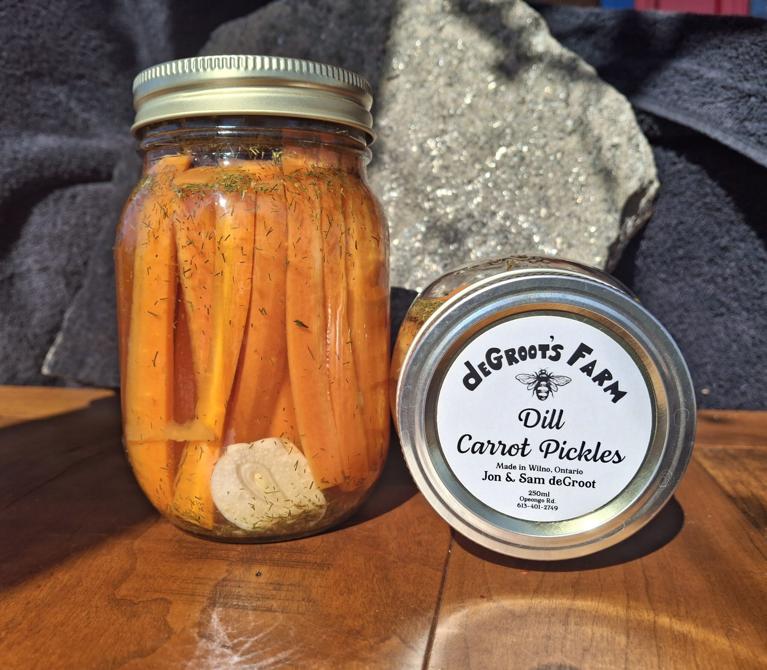 Dill Pickled Carrots$12.00 500ml jars. Ingredients: Carrots, White Vinegar, Water, Garlic, Salt, Spices Dill Pickled Carrots quantity Add to cart Categories: Not Bees, Sauces & Preserves Reviews (0) Reviews There are no reviews yet. Be the first to review “Dill Pickled Carrots” Cancel replyYour email address will not be published. Required fields are marked *CommentName * Email * Related products Add to cart Lavender & Green Tea $8.95 Sale! Read more Winter Wonderland (sold out) $7.50 Original price was: $7.50.$5.00Current price is: $5.00. Add to cart Hexagon Candle $15.00 Add to cart Chamomile & Calendula Herbal Cream $18.95